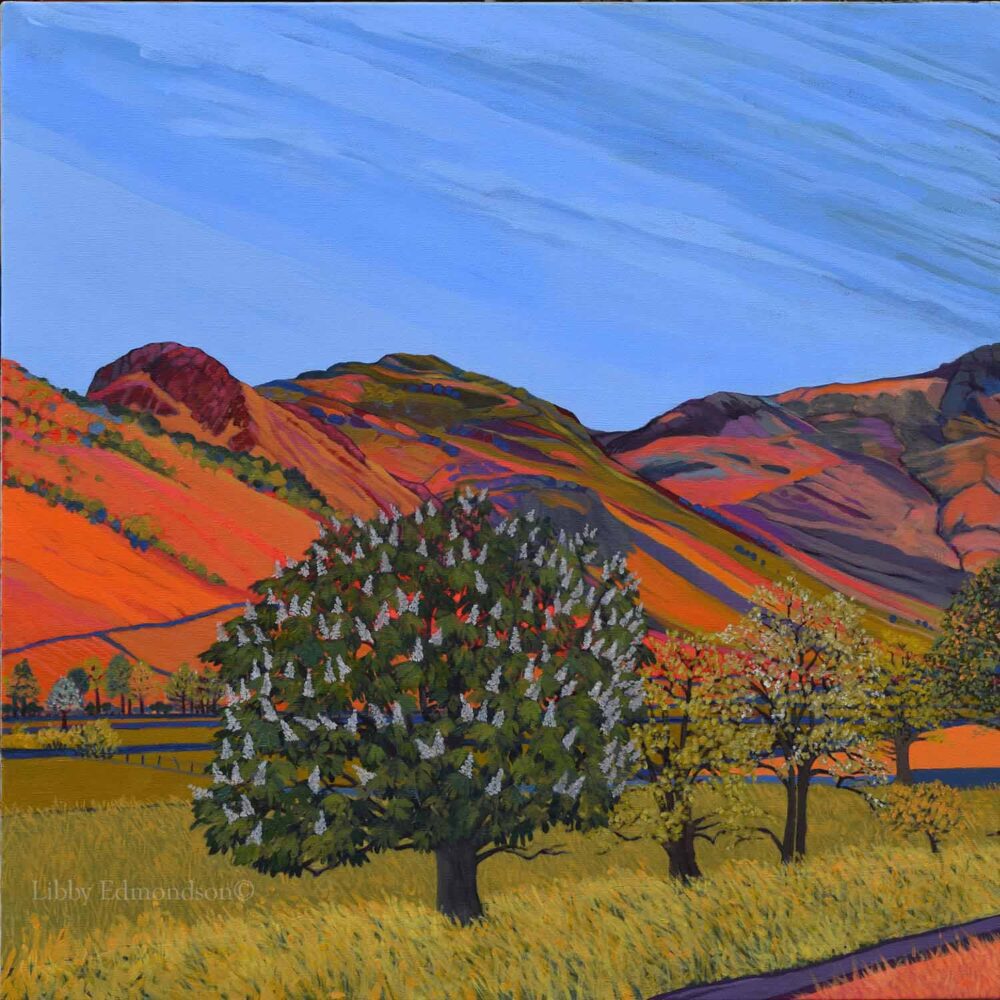 Libby Edmondson ‘Langdales’ Through the seasons, Triptych. Limited Edition Print from an original Painting,  Canvas’s are mounted on a wooden frame and ready to hang. Each Canvas measures 700 x 700 mm Non framed prints on Archival paper are sent out rolled in substantial postal tubes. Usually sent out in 2 – 3 working days Royal Mail 1st Class signed for, canvases about a week. Email or call me if you have an urgent order and I will do my best to help.